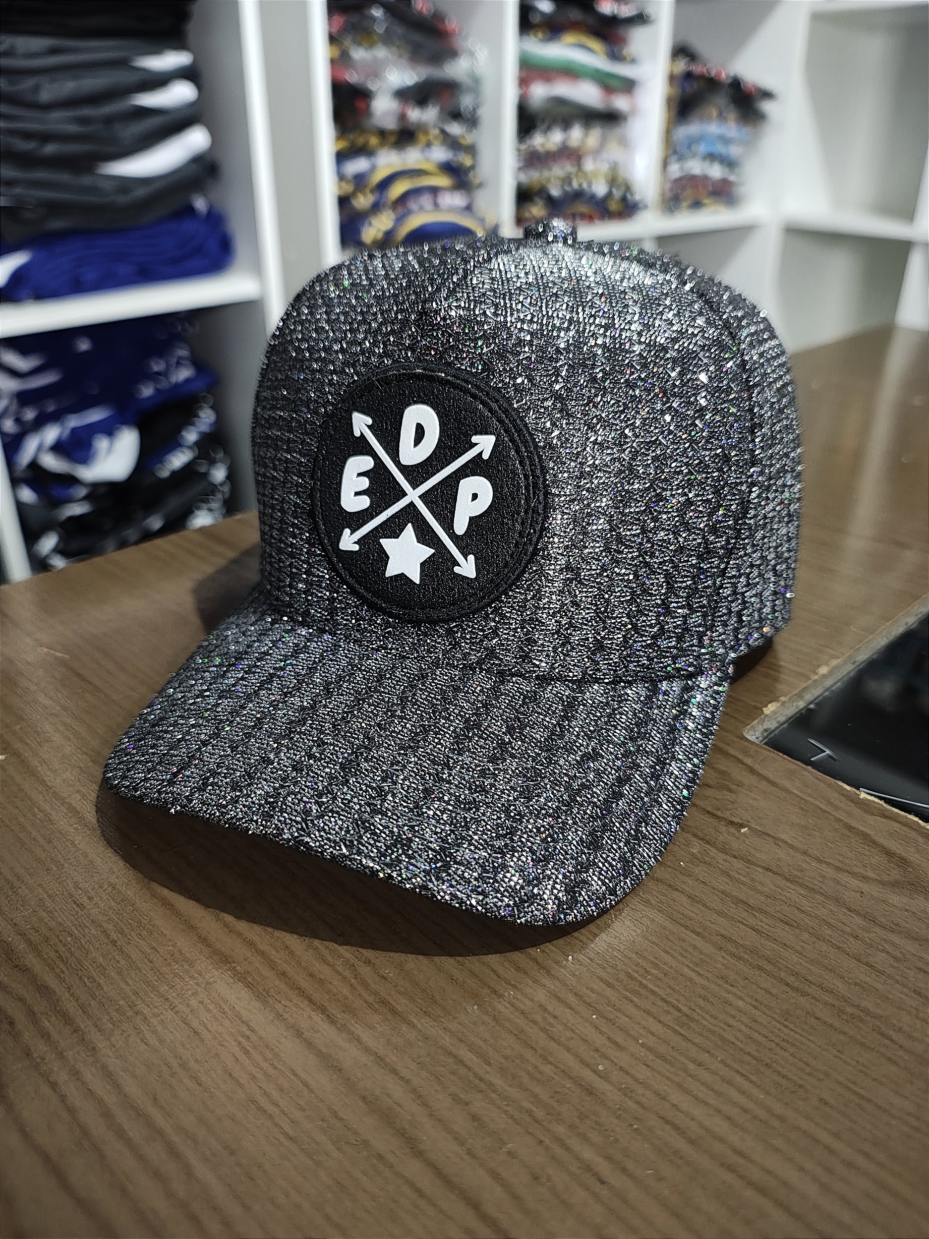 Esse boné é fabricado com tecido especial que brilha e reflete as cores Preto e Grafite
